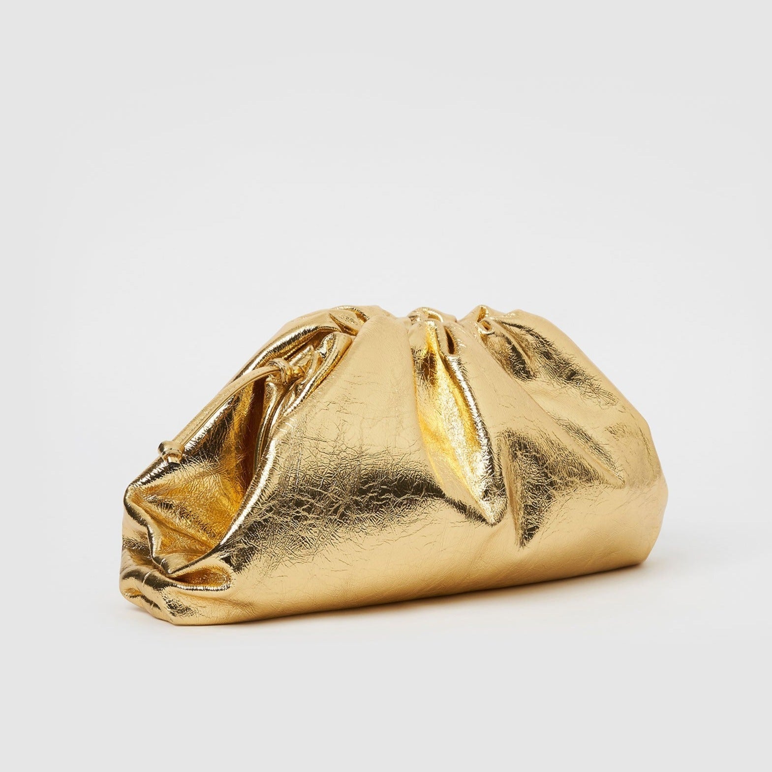 Elevate your outfit from pretty to stunning with our bold gold clutch.