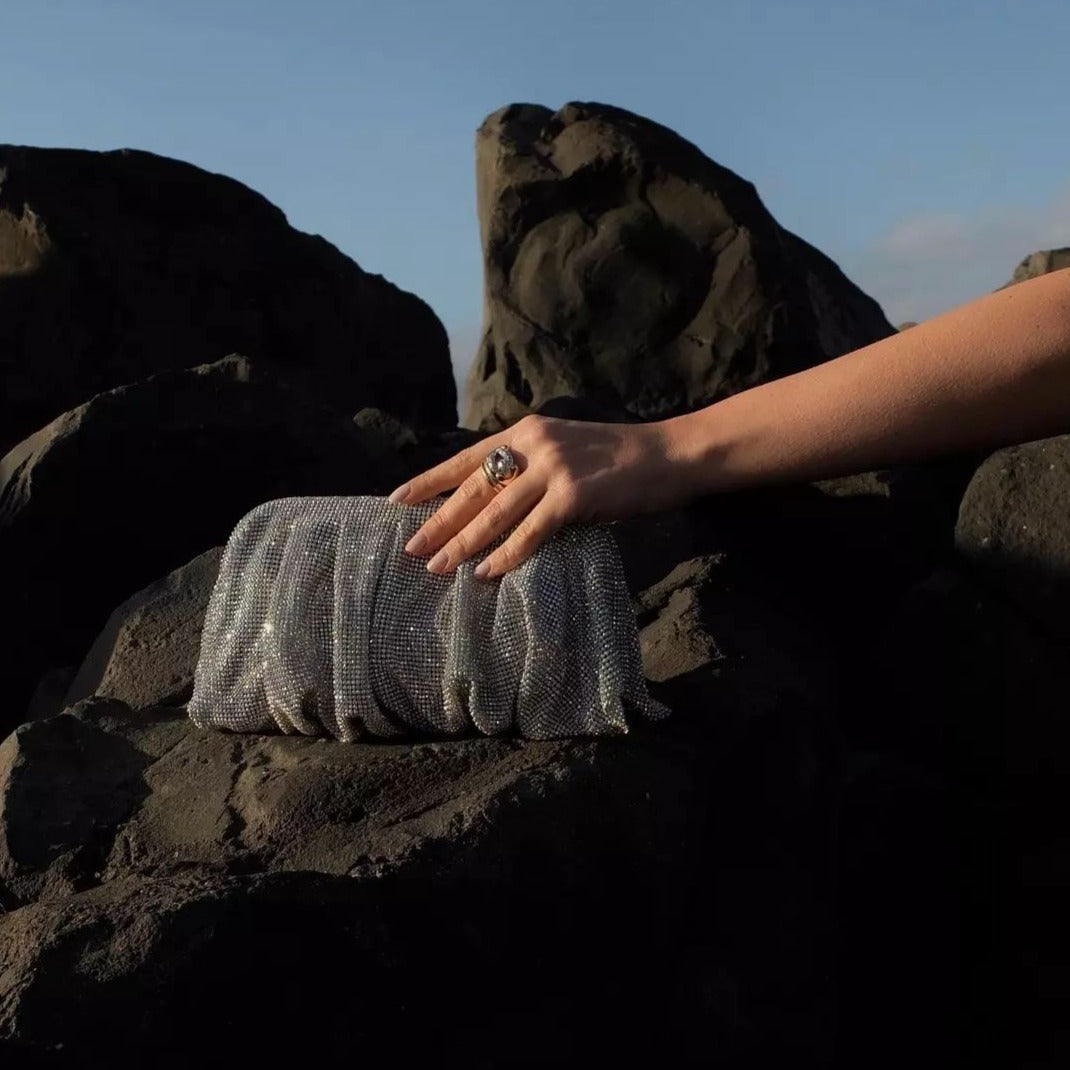 The Mila Poche x Dazzle clutch is a luxurious addition to your ensemble.